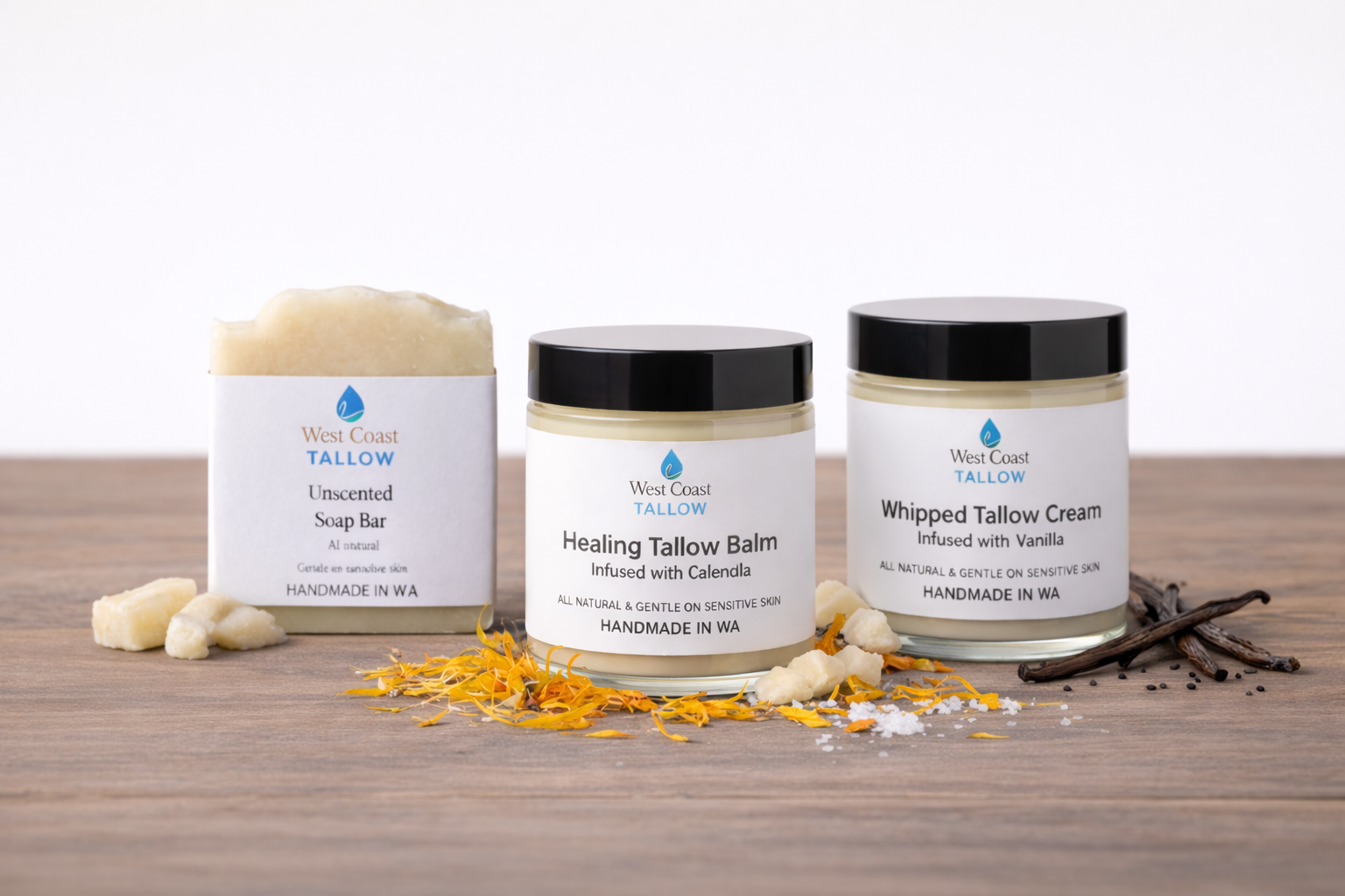 At West Coast Tallow, we believe the best skincare is simple, natural, and effective. Our philosophy is built on tradition – using pure ingredients that have stood the test of time.